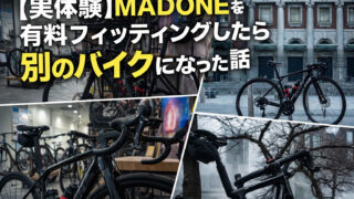 ロードバイク 【実体験】MADONEを有料フィッティングしたら別のバイクになった話―50代ホビーライダーが感じた「速さより楽さ」の正体― MADONEは速いけどきつい?50代で有料フィッティングを受けたら別のバイクになりました。実際の費用、ポジション変化、下ハンが楽になった理由を実体験で解説。 2026.02.09 ロードバイク